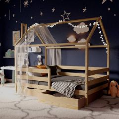 Кровать выполнена из экологичного, цельного массива дерева, а все поверхности кровати ровные и гладкие, безопасные для детей. Для детей кровать — это не только место для сна, но и место для игр и отдыха. Будь то кровать-домик, софа или двухъярусная кровать, которые можно украсить декоративными элементами под вкусы вашего ребенка или дополнить дополнительным местом для хранения.