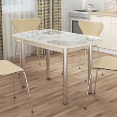 Стол Бостон 900*600 (опоры Брифинг) Стекло/фотопечать Ваниль | фото