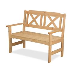 Классическая садовая скамья для 2-х человек. Садовая мебель приобретается для отдыха и обязана располагать к нему. Модели с анатомическими выверенными деталями конструкций в прямом смысле помогут расслабиться. Достаточно подлокотников, расположенных на комфортном уровне — безмятежный отдых на пару часов обеспечен. Изделие неокрашеное.