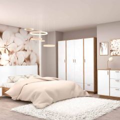 Модульная Спальня Эго (дуб крафт золотой/белый глянец) цоколь